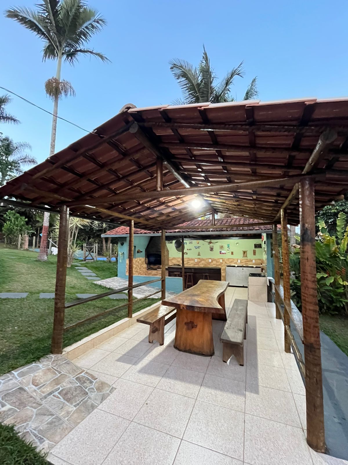 Casa espaçosa e mobiliada, área completa de churrasco, área de piscina, área de lazer, quadra gramada, sinuca, jardins e pomar. Fogão a lenha, fogão a gás e fogão industrial, utensílios básicos, airfrayer, microondas e bebedouro. Wi-FI disponível da rede Starlink e TV a cabo.Visita guiada a uma queijaria artesanal incluído no valor da hospedagem. Aceita pets.